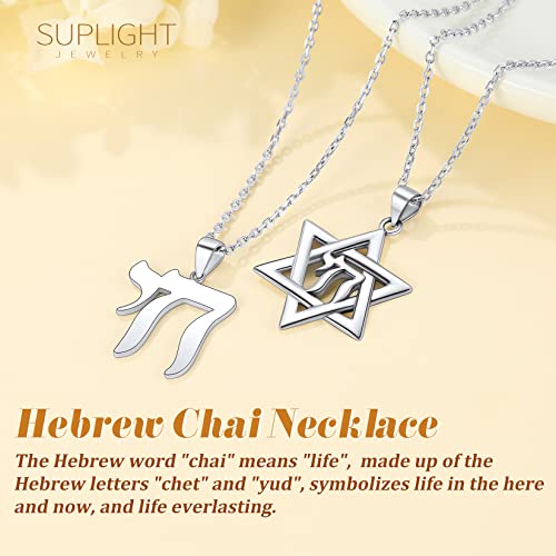 HOT ! Suplight 925 Sterling Silver Star of David Hebrew Pendant Necklace with Jewish Token Jewish Jewelry for Women Men (with Gift)