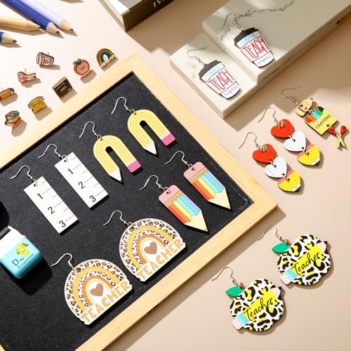 Material: Alloy, woodMetal type: Alloy, woodBack Finding: French WireEarring design: DangleGem type: No GemstonePackage Includes: each package contains 24 pairs of art earrings, providing a variety of designs to choose from; Each pair is meticulously packed, ensuring utmost care and safety during transportation; This makes it an ideal gift option for your favorite teacherSize Flexibility: these earrings are designed in a one size fits all manner; They are lightweight and comfortable, making them suitable for daily use; Their universal size ensures a well fit for everyone, eliminating the worry of size suitabilityMultiple Usages: these colorful teacher earrings are designed to make teachers feel special; From activities, birthdays to other celebratory events, these earrings become a well accessory; They help teachers carry a bit of their subject love wherever they goVersatile Piece of Jewelry: these teacher earrings aren't just symbolic; They are stylish too; The wide array of designs and styles make them versatile to pair with most wardrobe ensembles; Whether for a ceremony, parent meeting, or a casual day of teaching, these teacher earrings will complement your dress and shoes wellStyle of Art Earrings for Teachers: these beautifully crafted teacher earrings are designed specifically to appreciate and express gratitude to teachers; Featuring an abundance of patterns like pencils, books, rainbows, and apples, these earrings creatively emulate teachers' love for their profession and are suitable for those who have a penchant for art earrings Perfect for everyday use. High quality materials and excellent craftsmanship ensure long-lasting durability.