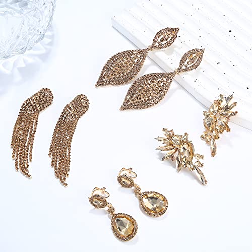 Sanfenly Clip On Earrings Women Dangle, Large Long Dangling Non Pierced Earrings Elegant Formal Big Bling Rhinestone Crystal Simulated Diamond Clip Earrings for Women Non Pierced Ears 5
