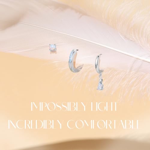 Opal Earrings Set for Women, Birthday Gift for Her, Sterling Silver | 14K Gold, Hypoallergenic S925 Hoop Stud Earrings for Women with Sensitive Ears, Dainty Stackable—Trendy 2025
