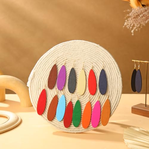 Ecally 16 Pairs Bohemian Wood Earrings Natural Wood Earrings African Jewelry Vintage Teardrop Dangle Eardrop for Women 6