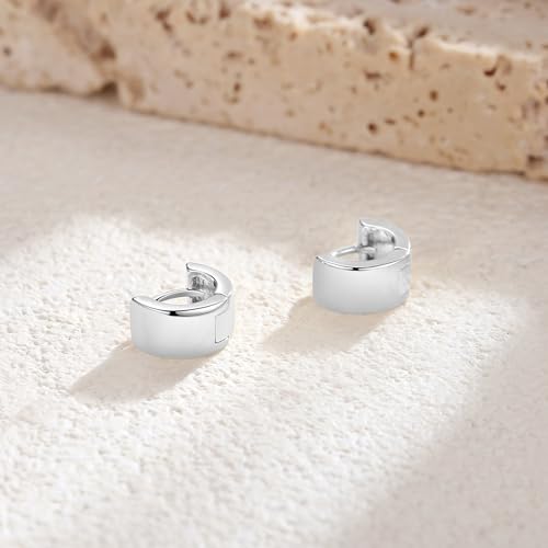 Small Huggie Earrings for Women 14K Gold Plated Chunky Hoops 925 Sterling Silver Post Mini Cartilage Wide Thick Hoop Earrings