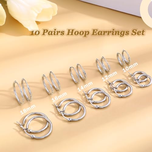 ORAZIO 14K Real Gold Plated Huggie Hoop Earrings Sets, 10 Pairs Hypoallergenic 316L Stainless Steel Silver Small Hoop Earrings Non-tarnish for Sensitive Ears, 24/7 Lightweight Dainty Endless Cartilage Jewelry for Women Men 6-18MM