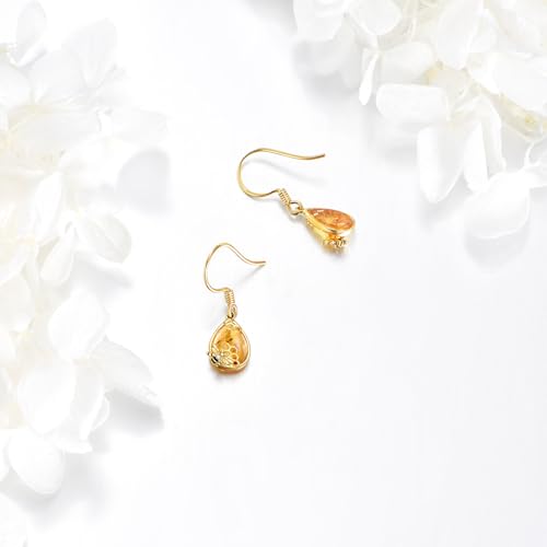 DOVRAN 14K Gold Bee Earrings for Women Real Yellow Gold Amber Teardrop Dangle Earrings Insect Jewelry Birthday Gifts for Wife Mom