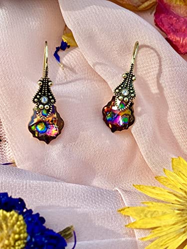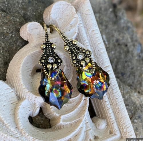 Material: GlassMetal type: ZincBack Finding: French WireEarring design: DangleGem type: No GemstoneDangle Crystal Drop Earrings for Women : Add a touch of beauty and luxury to your life with these hanging really unique earrings for women. The finest cut lightweight teardrop earrings for women with a long French brass wire adorned with a delicate elegant gift box.Specifications: Wearing a pair of these dangling earrings for women gives you a classic look to any attire. The iridescent earrings measure 1” in length and the crystal size is .63” x .43”. Add our earring set to your fashion jewelry for women collection!Handmade in The U.S.A: We ensure meticulous handcrafting of our bride earrings for wedding day from high-quality crystals. Our handmade jewelry for women is carefully packaged in our elegant jewelry gift box and is ready for gift giving.Unique Jewelry for Women: An elegant classic design with a dazzling sparkly baroque crystal at its center, these colorful earrings for women are designed to look like beautiful vintage earrings for women. Our amazing bridal bridal earrings for wedding are individually hand-crafted, and as unique as the person who wears them!Perfect Gift for Her: Our women's drop & dangle earrings are great as wedding earrings for brides, cute dangle earrings for birthdays, anniversaries, weddings, bridesmaids, quinceaneras, and more. Our gemstone earrings for women are a perfect way to show your family and friends just how much they mean to you! Perfect for everyday use. High quality materials and excellent craftsmanship ensure long-lasting durability.
