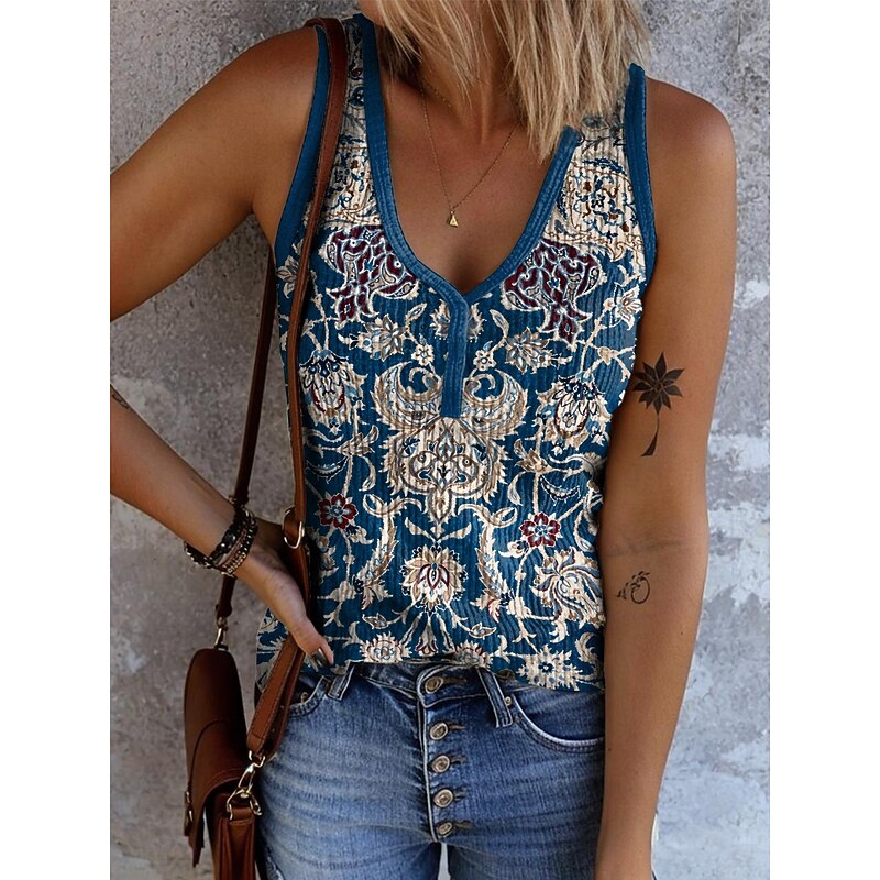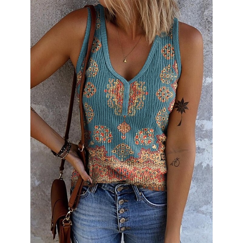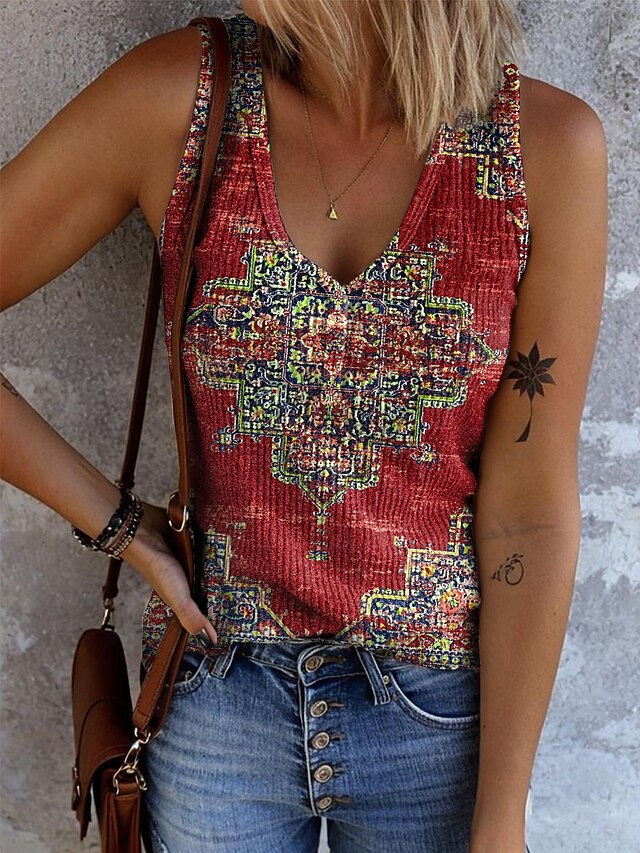 More information about Women's Camisole Tank Top Graphic Geometric Abstract Bohemia Vintage Stylish Sleeveless V Neck Regular Tops Daily Print White Yellow Red Blue Orange Summer Spring