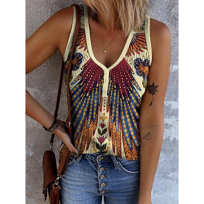 Women's Camisole Tank Top Graphic Geometric Abstract Bohemia Vintage Stylish Sleeveless V Neck Regular Tops Daily Print White Yellow Red Blue Orange Summer Spring 12