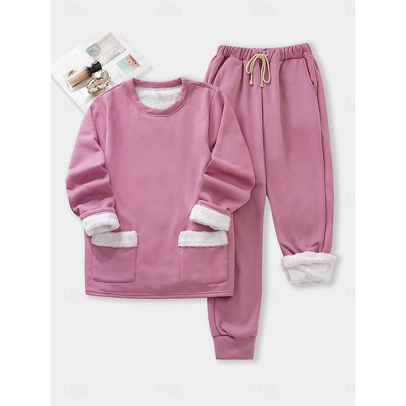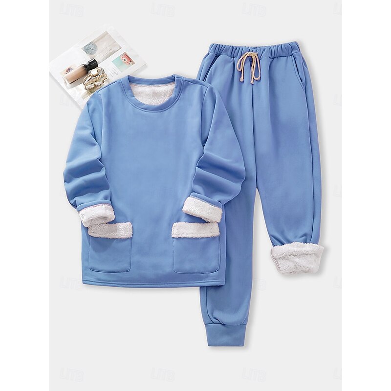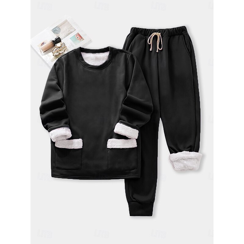 More information about Women's Pajamas Set Fleece Lined 2 Pieces Sweatshirt Tracksuits Daily Fleece Pants Long Sleeve Crew Neck Plain Casual Black Dark Pink Blue Fall Regular Fit