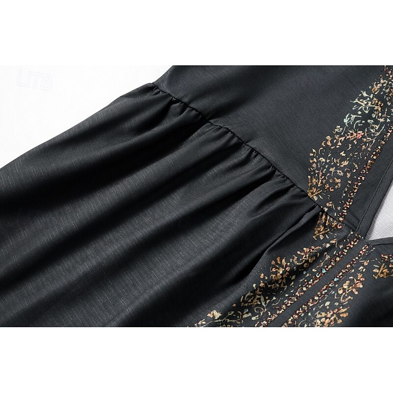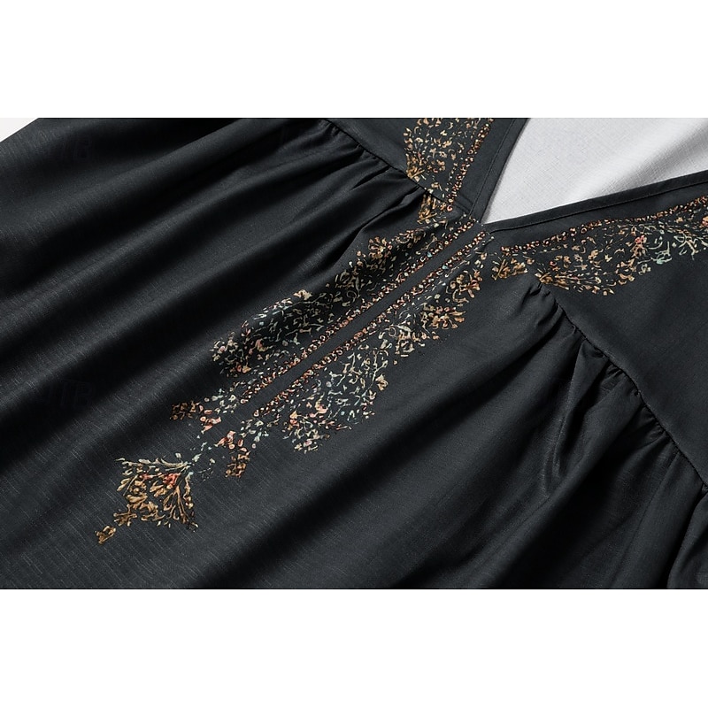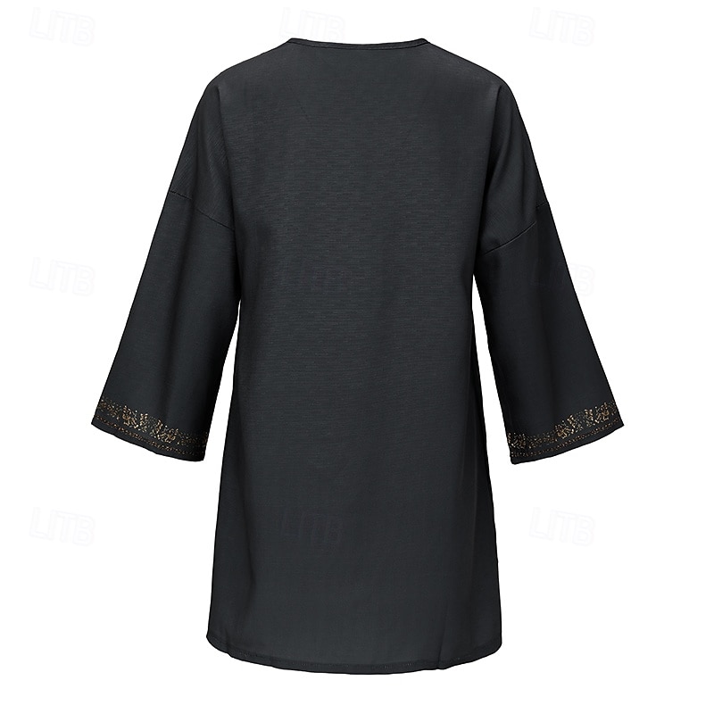 More information about Women's Cotton Linen Shirts Western Blouse Plain Bohemia Vintage Boho Long Sleeve V Neck Long Tops Daily Holiday Patchwork Dark Gray Summer