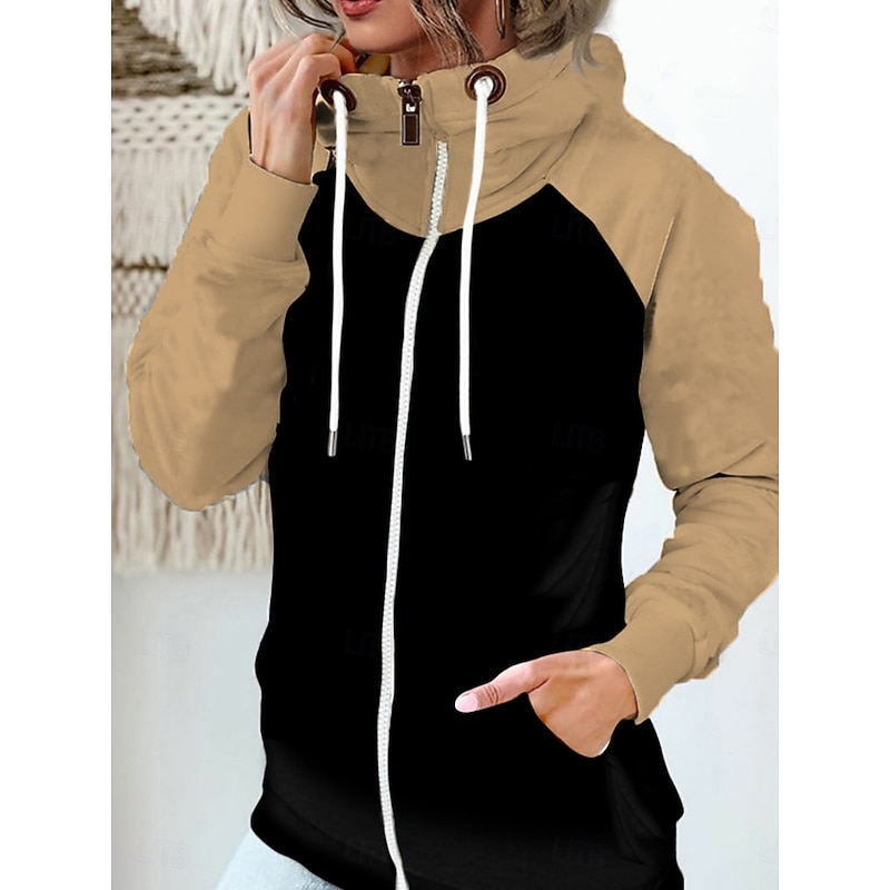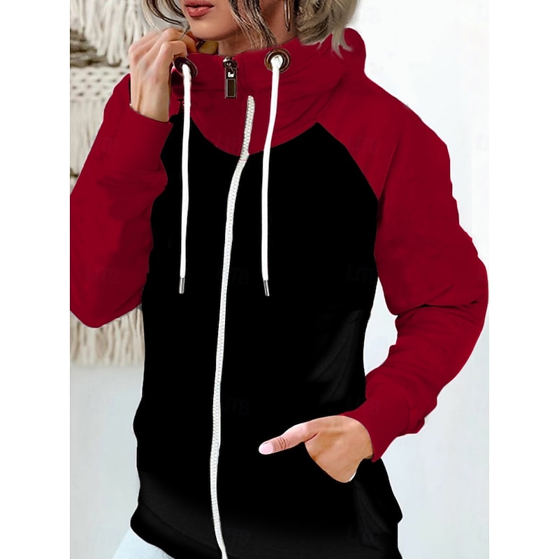More information about Women's Pullover Hoodie Sweatshirt Color Block Casual Long Sleeve Hooded Regular Tops Street Dailywear Zipper Pocket White Red Khaki Army Green Fall Winter