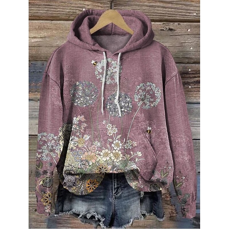 More information about Women's Hoodie Pullover Sweatshirt Oversized Long Sleeve Casual Graphic Vintage Fashion Western Hooded Tops Street Dailywear Holiday Print Front Pocket White Yellow Dark Pink Red Brown Fall Winter