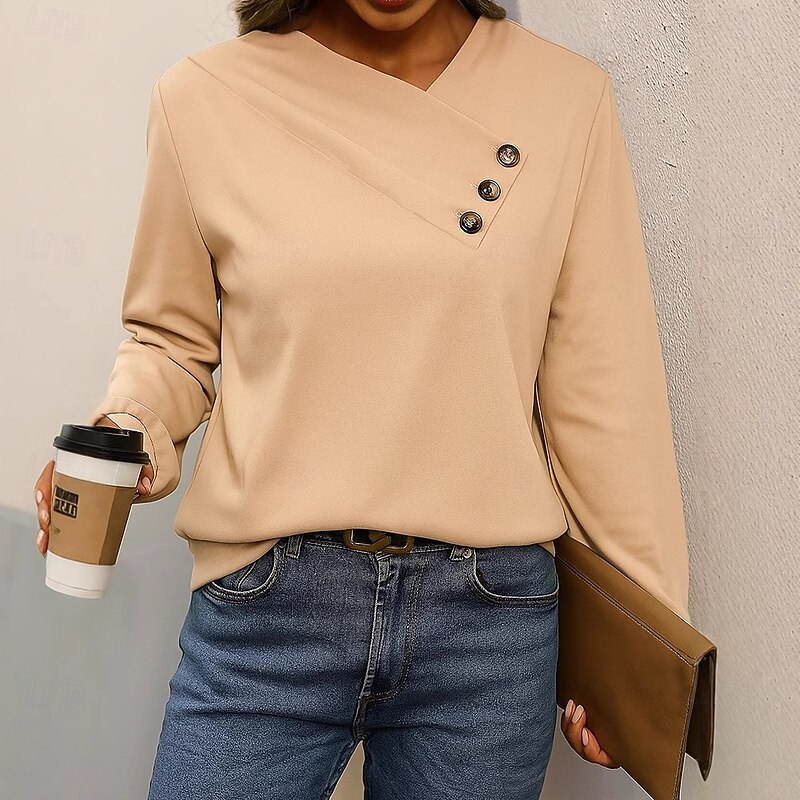 This Women's Blouse Solid Color Elegant Vintage Tropical Long Sleeve V Neck Regular Tops Work Daily Holiday Asymmetric dark brown Black Blue Apricot Spring Fall combines elegant design with practical functionality. Every detail has been carefully considered to ensure you get the best possible experience. The high quality construction means this product will serve you well for years to come.