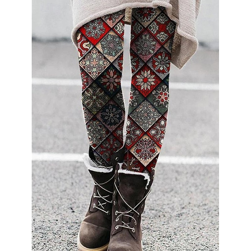This Women's Leggings Vacation Vintage Fashion Full Length High Waist Graphic Abstract Printing Thermal Warm Soft Breathable Stretchy Outdoor Vacation Street Dark red Pink Blue Blue Spring Fall Winter combines elegant design with practical functionality. Every detail has been carefully considered to ensure you get the best possible experience. The high quality construction means this product will serve you well for years to come.