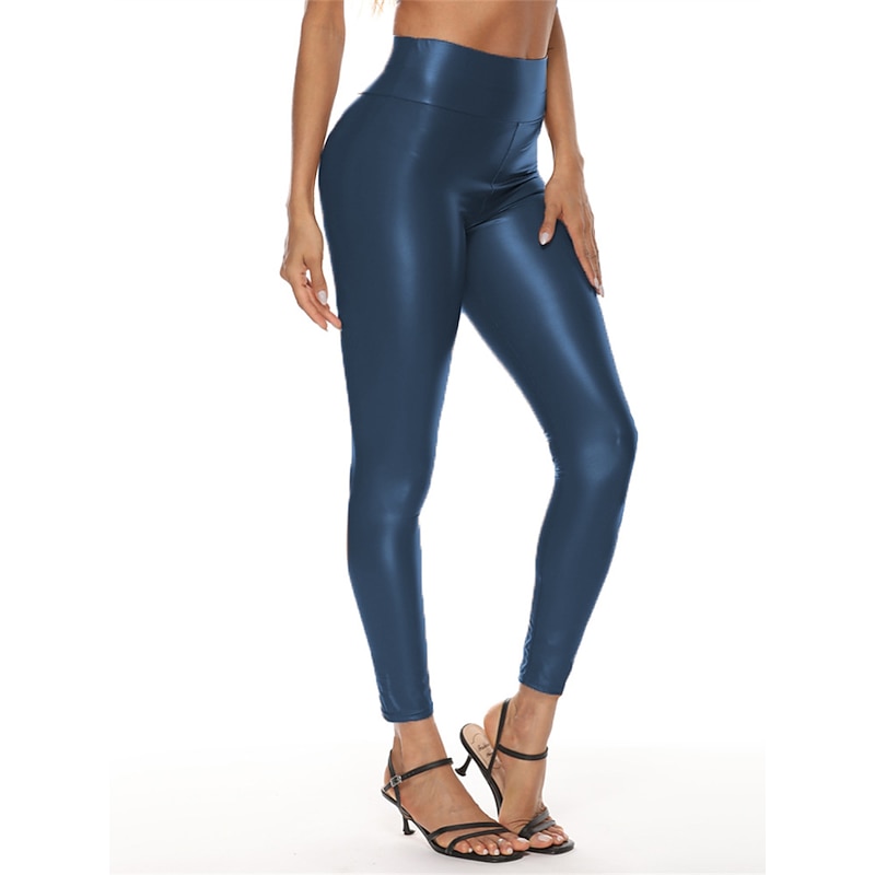 More information about Women's Leggings Cozy Leggings Fashion Streetwear Sexy Ankle-Length High Waist Solid Color High Cut Windproof Soft Comfortable Micro-elastic Outdoor Party Street navy blue light dark green light