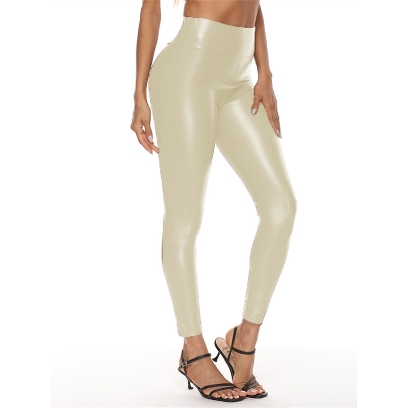 Crafted from high-quality faux leather and PU, these women's leggings offer a sleek, shiny texture that delivers both style and comfort. The material provides a micro-elastic fit, ensuring a snug wear that enhances your silhouette while maintaining ease of movement.