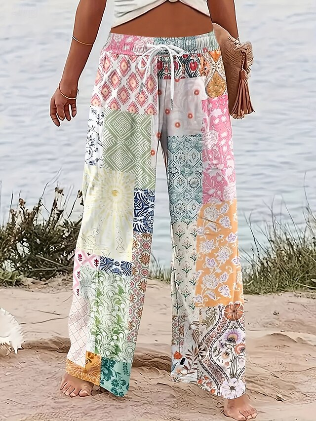 Women's Wide Leg Chinos Baggy Pants Vacation Vintage Fashion Full Length High Waist Graphic Geometric Paisley Printing Micro-elastic Formal Vacation Street Pink Blue Purple Green Summer Spring 7
