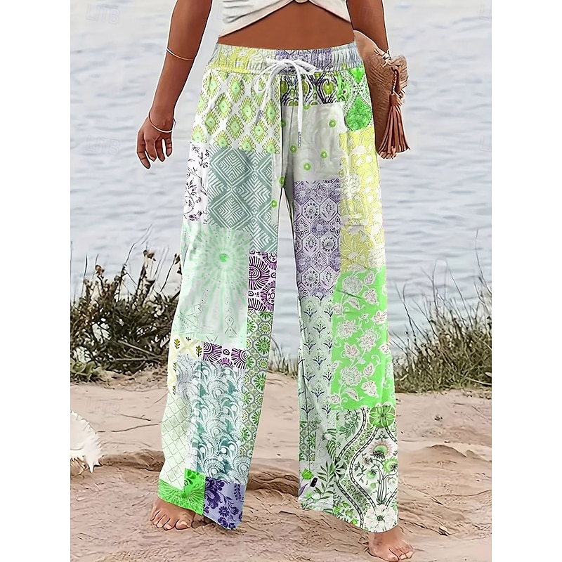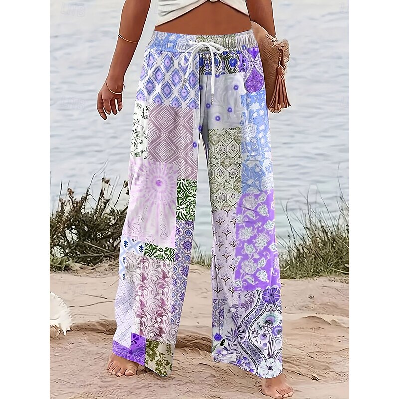 More information about Women's Wide Leg Chinos Baggy Pants Vacation Vintage Fashion Full Length High Waist Graphic Geometric Paisley Printing Micro-elastic Formal Vacation Street Pink Blue Purple Green Summer Spring
