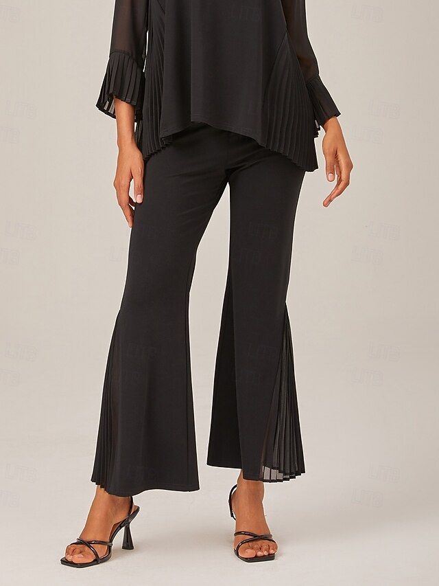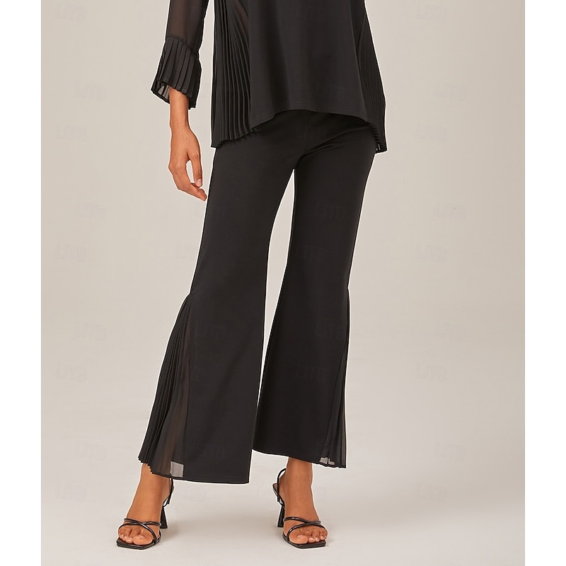 More information about Women's Pleated Wide-Leg Pants Elastic Waistband Contrast Patchwork TENCEL Roma Stylish Comfortable Breathable Casual Daily Work Fall