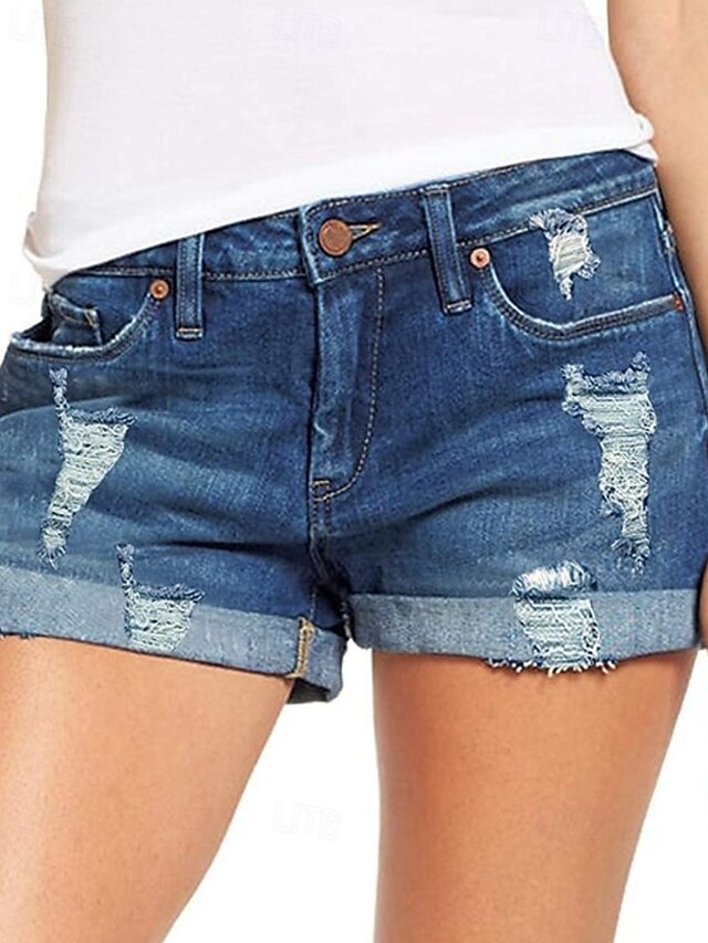 Why Choose Women's Shorts Slacks Streetwear Casual Short Natural Plain Pocket Ripped Comfy Holiday Daily Wear Casual Daily Light Sky Blue Navy Black Summer Regular Fit?
