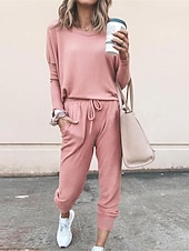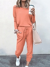 More information about Women's Pajamas Pajama Top and Pant Sets Pure Color Fashion Casual Soft Home Daily Bed Breathable Crew Neck Long Sleeve T shirt Tee Pant Pocket Elastic Waist Summer Spring