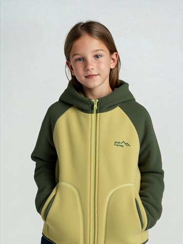 Kids Fleece Jacket, Color Block Hooded Coat, Full-Zip Winter Outerwear with Pockets, (US, Numeric Height, 150, Fruit green) 6