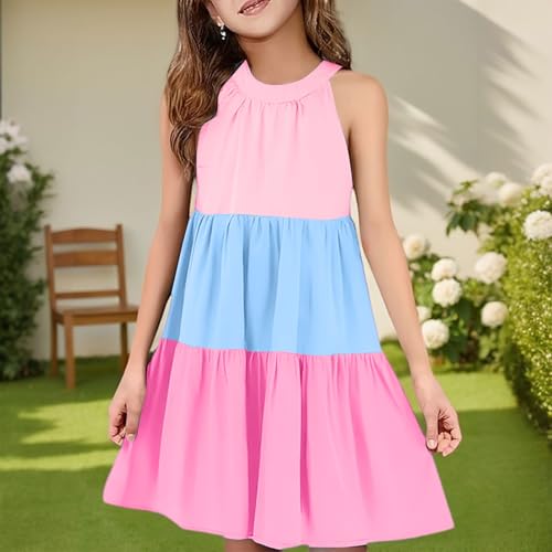 Girls' Sleeveless Color Block Dress Summer Casual Sundress Skater Swing Twirly Halter Dress 6