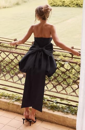 • Features: This mini dress features a bold floral bud design. The strapless design, combined with a tightened waist, creates a fluffy yet petite feeling. The detachable bow strap behind has a long V-shaped tail, which is even more eye-catching. Detachable Bow,Strapless,Lace Up Back,Sleeveless,Flower Bud,Corset.A perfectly designed dress can enhance your beauty.