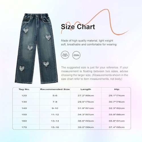 More information about Girls Kids Casual Loose Ripped Jeans Baggy Trousers Wide-Leg Fashion Trendy Denim Pants Streetwear