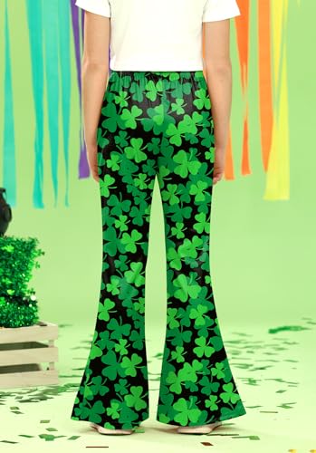 Girls St.Patrick's Irish Clover Print Legging Lucky Shamrock Flared Pants with Pockets 5-14 Years 6