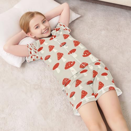 senya Red Mushrooms M Satin Summer Pajama Sets Silk Short Sleeve Button Down Sleepwear