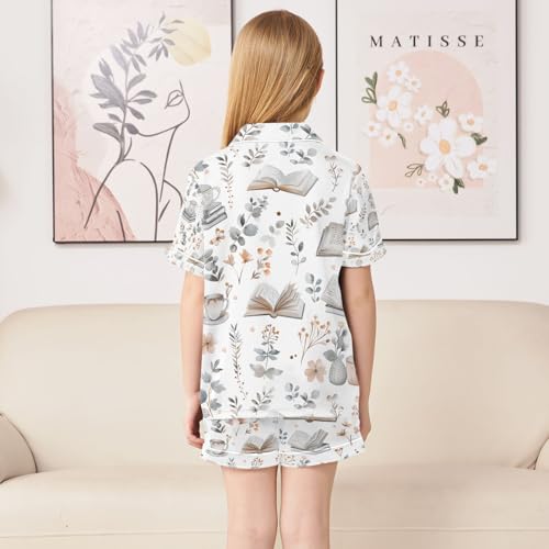 HOT ! senya Books and Cute Cozy Things Satin Summer Pajama Sets Silk Short Sleeve Button Down Sleepwear