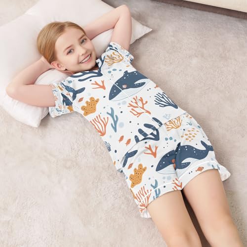 HOT ! senya Whale and Coral A Satin Summer Pajama Sets Silk Short Sleeve Button Down Sleepwear