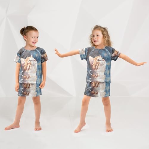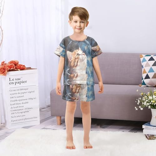 Why Choose ALAZA Cat Astronaut Watercolor Pajamas Set Short Sleeve Cotton Sleepwear Summer Pjs 2 Piece 5-14Y?