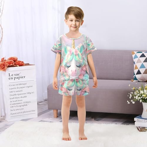 Why Choose ALAZA Unicorn Rose Flower 3d Pajamas Set Short Sleeve Cotton Sleepwear Summer Pjs 2 Piece 5-14Y?