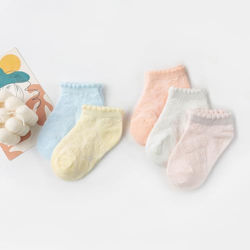 5 Pack Girls Boys Low Cut Socks with Ruffled Cuff Smiley Faces Mesh Thin Cotton Summer No Show Socks for Toddler Kids 1