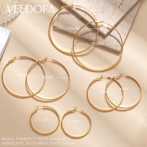 Material: CopperMetal type: CopperBack Finding: Latch BackEarring design: HoopGem type: No Gemstone【Quality Large Hoop Earrings for Women】This big hoop earrings for women are Circular Line Stripes flat design,The sparkling lightweight are stylish and elegant with a smooth surface for can last color Retention.This gold hoop earrings for women are not only a great statement piece for any outfit but also is more layered when worn together with other large gold hoops.good suit your dressing style,adding more charm to you.【Hypoallergenic Thick Gold Hoop Earrings】Our 925 sterling silver hoop earrings and 14k gold hoop earrings for women are made of premium 925 sterling silver adn High copper material.Lead-free and nickel-free and Long-lasting color retention,won't hurt your sensitive ears, very safe and comfortable to wear everyday,do not cause any discomfort or pain. These gold hypoallergenic earrings showcase impeccable craftsmanship and attention to detail.【Lightweight Gold Plated Hoop Earrings】This 4mm thick ness thin Gold Hoop Earrings have in medium and large hoop earrings.The outside diameters of this big gold earrings are about 20/30/40/50/60/70mm.Have a variety sizes available different sizes meet daily needs.The chunky gold hoop earrings the full polish feeling and flat line design will ensure a contemporary feel,make you look more fashion.【Upgrade Clasp Design】This earrings for women trendy hoops is very flexible and the secure clip-top design makes it easy to open and close.With their latch back closure you just need to insert the hook through the earlobe and snap it into the clasp.This gold hopps you won't feel uncomfortable even if you wear them for a long time,outfits and is the good finishing touch to any look.【Exquisite Gift & After Sales Service】Each earrings for women trendy hoops is packed in a beautifully gift box and a polishing cloth.The big gold hoops can convey your love and affection towards them,You can send it aretes de oro para mujer as a gift to your wife, mom,friends or yourself on Christmas,VBirthday, Mother's Day, alentine's Day, Wedding, or other special time. Just express your most sincere love to them. Perfect for everyday use. High quality materials and excellent craftsmanship ensure long-lasting durability.
