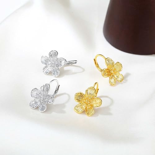 Small Dangle Earrings for Women - Vintage Flower Design, 14k Gold Plated Hypoallergenic Lever-back Earrings, Silver & Gold Color, Lightweight & Dainty Jewelry 4
