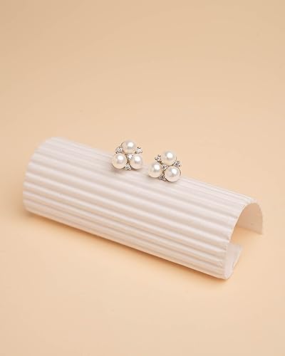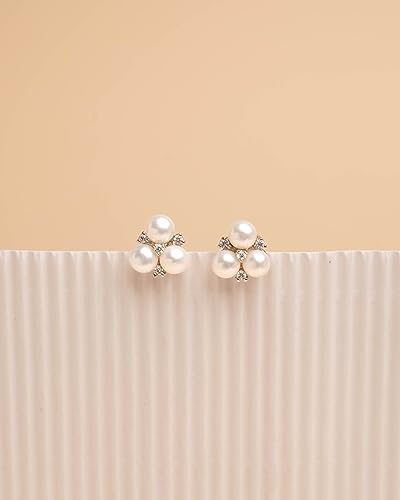 Women Pearl Stud Earrings with Three Fresh Water Cultured Pearls Button Shape 4-5 mm by Secret & You | Sterling Silver 925 Mounts with big nuts.