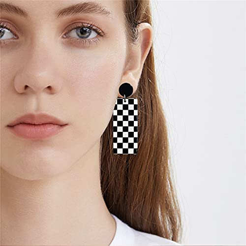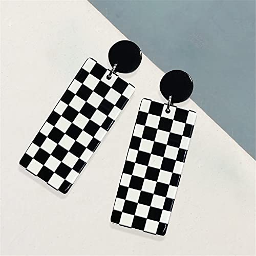 Unique Acrylic Black White Striped Checkered Dangle Drop Earrings Heart Flower Pattern Stud Earrings for Women Statement 5