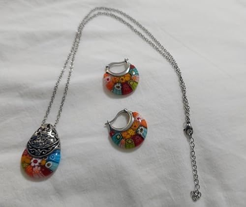 • Murano Style Glass Hoop Earrings for Women, the classic glass artwork brings the feeling of Romantic venice life in Italian. The pattern of each batch is different due to the flowers are randomly arranged.