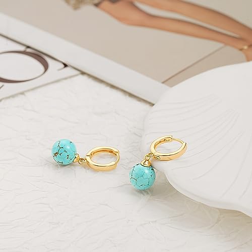• Dangling from the gold drop earrings is a 10mm fashion and unique turquoise. The women's small hoop earrings with post are 18K gold plated which can help brighten up your appearance and give you a relaxing and glamorous wearing experience.