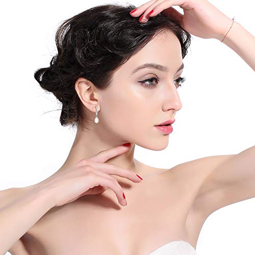 Milacolato 925 Sterling Silver Pearl Dangle Earrings for Women 14K White Gold Plated Leverback Earrings AAAAA Quality Genuine Freshwater Cultured Pearl Drop Earrings