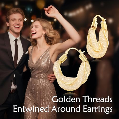 • 【Exquisite Handcrafted Design】These earrings feature a 14k gold plating,with a unique mesh design that adds a modern and fashionable touch.Due to the handcrafted nature,these 14k gold hoop eariing may have slight variations, making them truly one-of-a-kind,perfect for various outfits