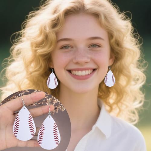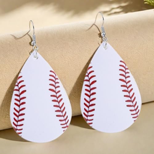 Baseball Earrings for Women Leather Teardrop Dangle Drop Jewelry Outfits Accessories