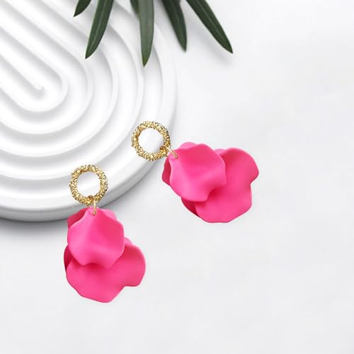 Rose Petal Flower Dangle Earrings for Women Petal Statement Floral Tassel Earrings Valentine Day 2