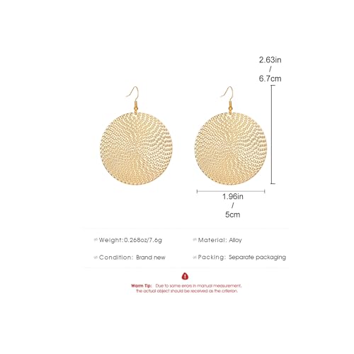 Anmpab Boho Large Disc Earrings for Women Vintage Geometric Hammered Round Circle Drop Dangle Earrings Statement Jewelry 3