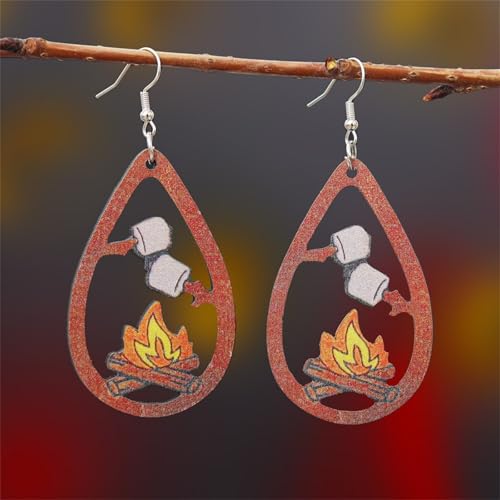 MALOYANVE Bonfire Earrings for Women Funny Wooden Lightweight Teardrop Fire Dangle Drop Campfire Earrings for Outdoor Lovers 1
