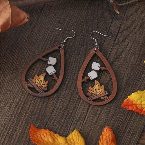 HOT ! MALOYANVE Bonfire Earrings for Women Funny Wooden Lightweight Teardrop Fire Dangle Drop Campfire Earrings for Outdoor Lovers