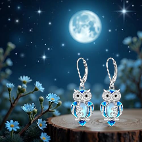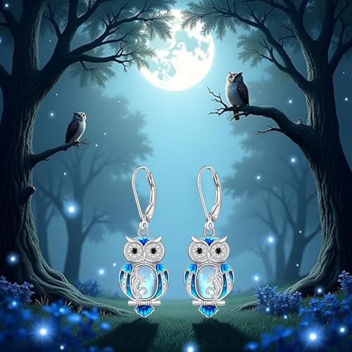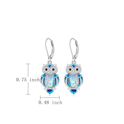 Why Choose Owl Gifts Owl Earrings for Women Sterling Silver Blue Enamel Oval Moonstone Earrings Dangle Halloween Jewelry Gifts?