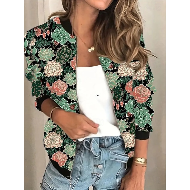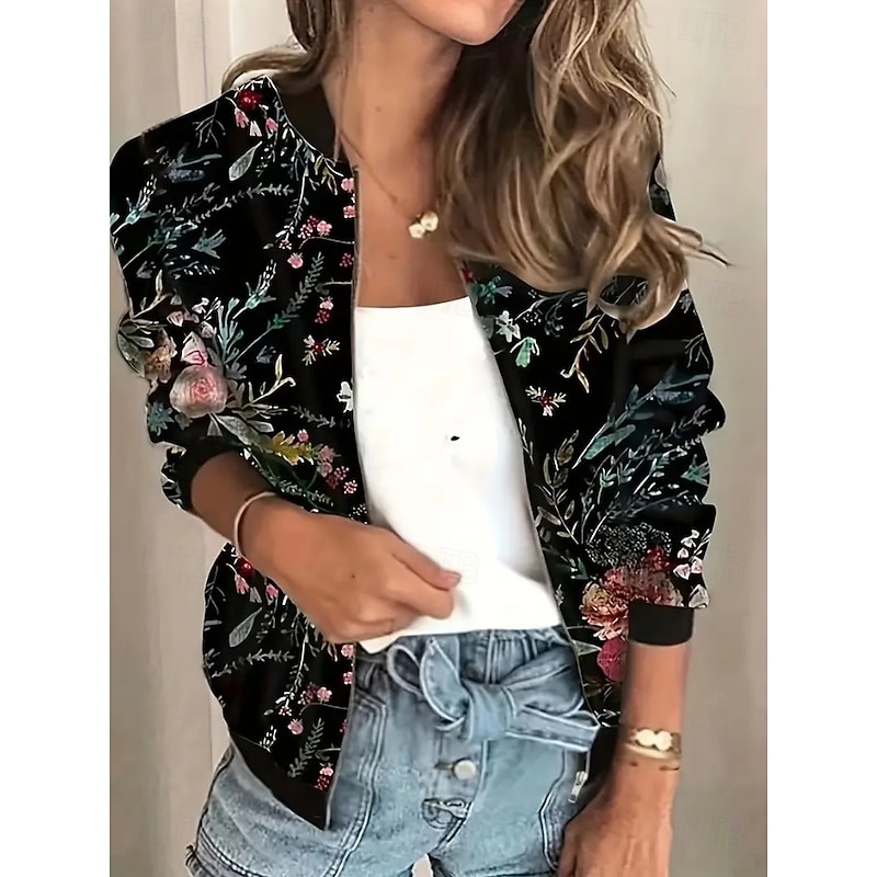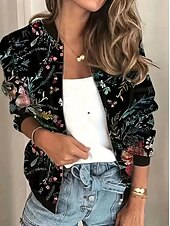 GBP £26 - Women's Casual Jacket Warm Quick Dry Zipper Pocket Elegant Fashion Daily Simple Floral Vacation Casual Daily Holiday Regular Baseball Collar Regular Fit Long Sleeve Outerwear Black Gold Black Dark 2025. Shop for cheap Bomber Jacket online? Buy at lightinthebox.com on sale today!